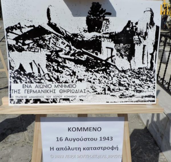 Στο Μαρτυρικό Κομμένο Άρτης, ο Σεβασμιώτατος Μητροπολίτης Άρτης κ. Καλλίνικος τέλεσε σήμερα Επιμνημόσυνη Δέηση για τα 317 θύματα (16 Αυγούστου 1943) των Γερμανικών Κατοχικών Δυνάμεων.