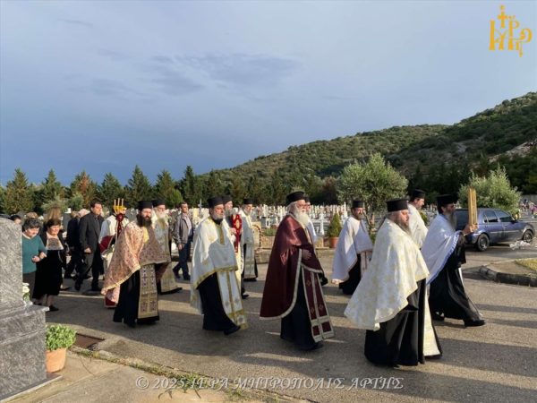 Στον υπό ανέγερση Ναό της Αναλήψεως, στο νέο κοιμητήριο της Άρτας, ετελέσθη πανηγυρικός Εσπερινός, χοροστατούντος του Σεβασμιωτάτου Μητροπολίτου Άρτης κ. Καλλινίκου, το απόγευμα της Τετάρτης 28ης Μαΐου 2025.