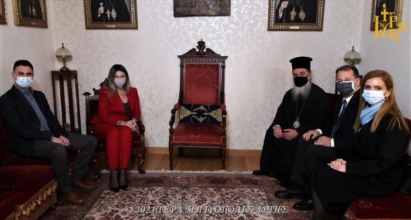 Η Υφυπουργός Τουρισμού κ. Σοφία Ζαχαράκη, ευρισκομένη στην Άρτα, με πρόσκληση του Δημάρχου Αρταίων κ. Χρήστου Τσιρογιάννη, για το άναμμα του Χριστουγεννιάτικου δένδρου στην κεντρική πλατεία της πόλης, επισκέφτηκε, τον Σεβασμιώτατο Μητροπολίτη Άρτης κ. Καλλίνικο, στο Επισκοπείο το απόγευμα της Παρασκευής 10 Δεκεμβρίου 2021