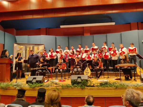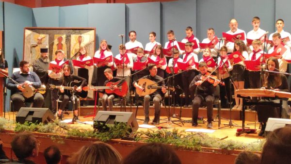 Οι μαθητές της Σχολής Βυζαντινής Μουσικής Μεσολογγίου «Άγιος Ιωάννης ο Κουκουζέλης», της Ιεράς Μητροπόλεως Αιτωλίας και Ακαρνανίας, έψαλλαν επίκαιρους βυζαντινούς ύμνους και τραγούδησαν χριστουγεννιάτικα τραγούδια και παραδοσιακά κάλαντα, με τη συνοδεία μουσικών οργάνων.