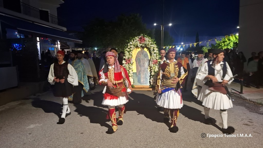 Μετά την Ακολουθία του Εσπερινού πραγματοποιήθηκε η λιτάνευση της Ιεράς Εικόνας του Αγίου Νικολάου, υπό τους ήχους της Φιλαρμονικής του Δήμου Αμφιλοχίας, στους δρόμους της Κοινότητος.