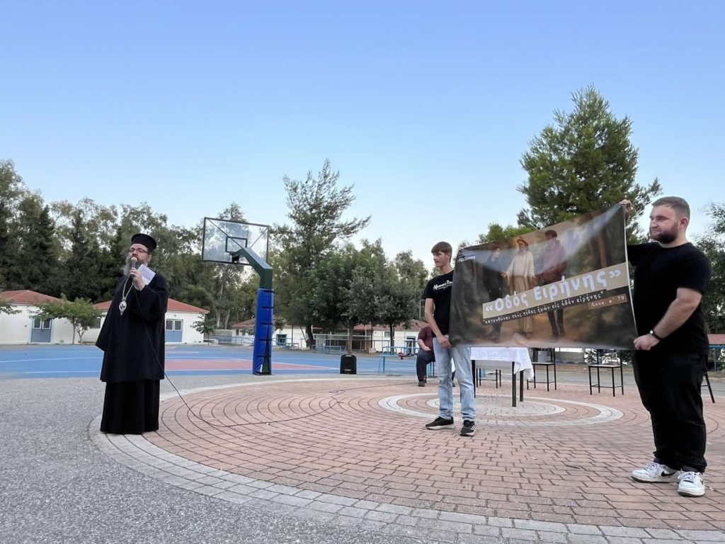 Ο Σεβασμιώτατος με πατρικούς και καρδιακούς λόγους ευχαρίστησε τα μέλη της Κατασκήνωσης για την θερμή υποδοχή και εξέφρασε την χαρά του για την μέχρι τώρα πορεία όλων των κατασκηνωτικών περιόδων. Παρουσίασε την γενική ονομασία της Κατασκήνωσης, που είναι «Οδός Ειρήνης», λέγοντας μεταξύ άλλων, ότι ο κόσμος διψά για ειρήνη, αναζητά ανακούφιση από ταραχές, φόβους και αγωνίες. Όμως η ειρήνη που ζητά δεν είναι πάντα αυτή που χαρίζει ο Χριστός. Γιατί η ειρήνη του Θεού δεν είναι απλώς μια εξωτερική ηρεμία ή η απουσία πολέμου, αλλά είναι η ίδια η παρουσία του Χριστού στην καρδιά του ανθρώπου.