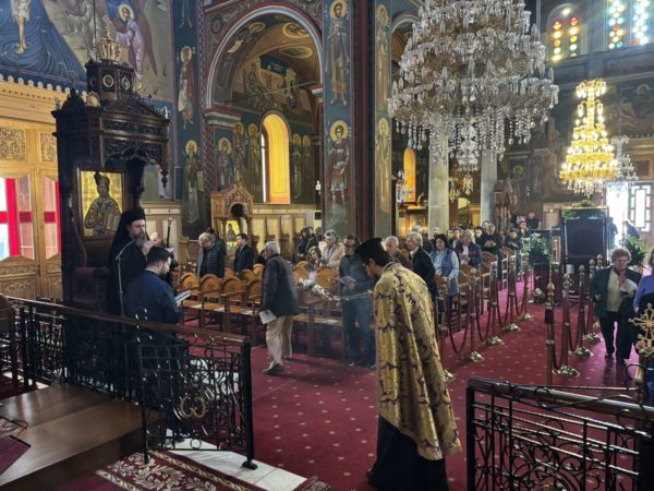 Στην Ιερά Πόλη του Μεσολογγίου, στον Ιερό Ναό του Αγίου Παντελεήμονος χοροστάτησε στην Ακολουθία του Γ΄ Κατανυκτικού Εσπερινού, το απόγευμα της Κυριακής Β’ Νηστειών, 16 Μαρτίου 2025, ο Σεβασμιώτατος Μητροπολίτης Αιτωλίας και Ακαρνανίας κ. Δαμασκηνός. Τον θείο λόγο κήρυξε ο Αιδεσιμολογιώτατος Πρωτοπρεσβύτερος Σπυρίδων Βασιλάκος, Κληρικός της Ιεράς Μητροπόλεως Θηβών, Λεβαδείας και Αυλίδος, ο οποίος ανέπτυξε το θέμα: «Πνευματικός βηματισμός μέσα στην Αγία Τεσσαρακοστή».