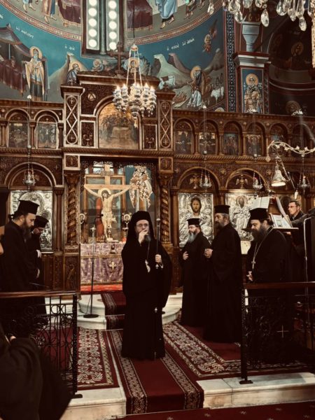 Αμέσως μετά ο Σεβασμιώτατος χοροστάτησε στην Ακολουθία του Κατανυκτικού Εσπερινού στο Αγρίνιο, στον Ιερό Ναό Αγίας Τριάδος, με την συμμετοχή των Κληρικών της ευρύτερης περιοχής του Αγρινίου και πλήθους κόσμου.
