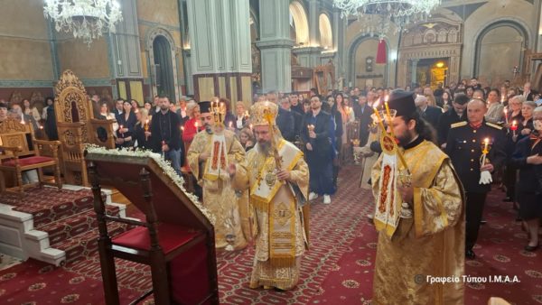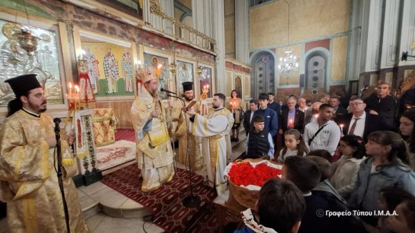 Προεξάρχοντος του Σεβασμιωτάτου Μητροπολίτου Αιτωλίας και Ακαρνανίας κ. Δαμασκηνού εορτάσθηκε η εορτή των εορτών και η πανήγυρη των πανηγύρεων, η Ανάσταση του Κυρίου, στον Ιερό Μητροπολιτικό Ναό Αγίου Σπυρίδωνος στην Ιερά Πόλη του Μεσολογγίου.