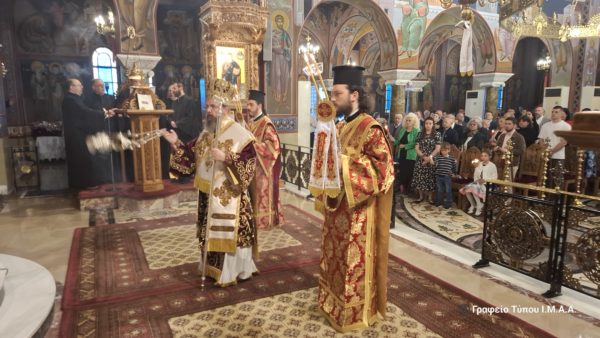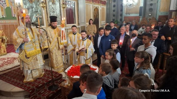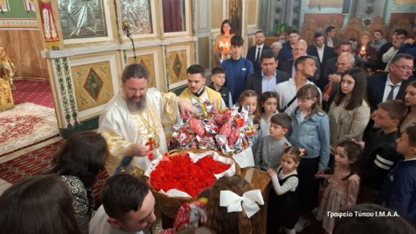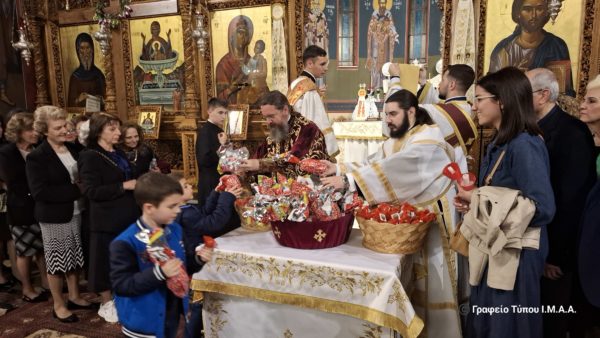 Κατά την απόλυση ο Σεβασμιώτατος ευχαρίστησε τους ιερείς για την διακονία τους όλες αυτές τις ημέρες της Αγίας και Μεγάλης Τεσσαρακοστής και ιδιαίτερα την Αγία και Μεγάλη Εβδομάδα για το λατρευτικό, ποιμαντικό και κοινωνικό έργο που επετέλεσαν, καθώς ευχαρίστησε και ευχήθηκε κατάλληλα στους πιστούς που συμμετείχαν στον Εσπερινό της Αγάπης και διένειμε σε όλους τα πασχαλινά κόκκινα αβγά και τα σοκολατένια αυγά στα μικρά παιδιά.