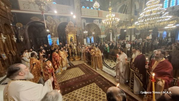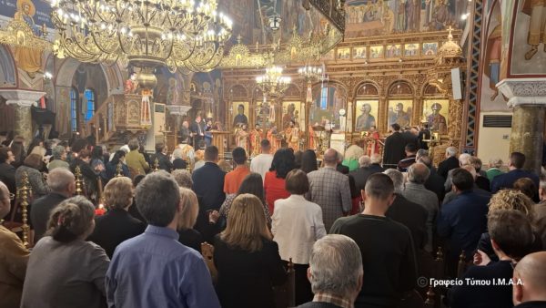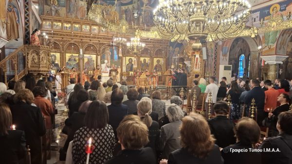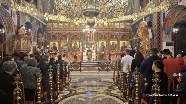 Το απόγευμα της Κυριακής του Πάσχα στον Ιερό Μητροπολιτικό Ναό Ζωοδόχου Πηγής Αγρινίου τελέσθηκε, με λαμπρότητα, ο Εσπερινός της Αγάπης, προεξάρχοντος του Μητροπολίτου Αιτωλίας και Ακαρνανίας, με την συμμετοχή των Ιεροκηρύκων και των Ιερέων της πόλεως του Αγρινίου και της ευρύτερης περιοχής.