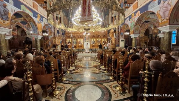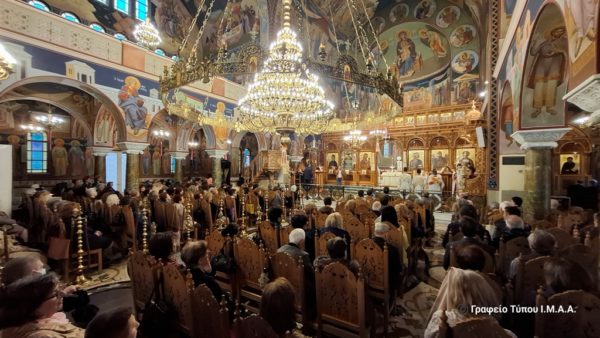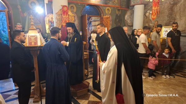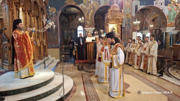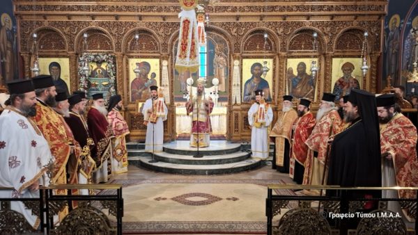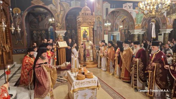 Χοροστάτησε στην ακολουθία του Μεθέορτου Εσπερινού και του Ιερού Παρακλητικού Κανόνος της Υπεραγίας Θεοτόκου στο Καθολικό της πανηγυρίζουσας Ιεράς Μονής και μίλησε στους πολυπληθείς προσκυνητές που συρρέουν κατά εκατοντάδες για να προσκυνήσουν την Ιερά και Θαυματουργό Εικόνα της Παναγίας της Ελεούσης.