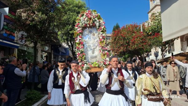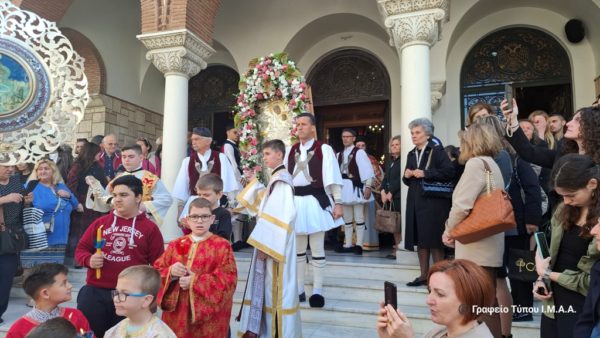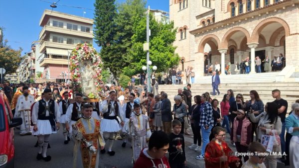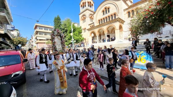 Αμέσως μετά την Θεία Λειτουργία, ακολούθησε, για πρώτη φορά, η λιτάνευση της εφεστίου και θαυματουργού Εικόνας της Ζωοδόχου Πηγής στους κεντρικούς δρόμους της Ενορίας. Έλαβαν μέρος η Φιλαρμονική του Δήμου Αγρινίου, αντιπροσωπεία του Ερυθρού Σταυρού και μέλη πολιτιστικών Συλλόγων της πόλεως.