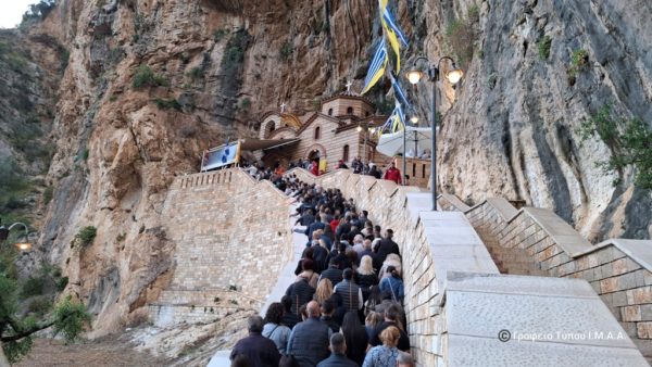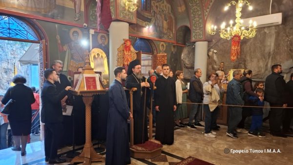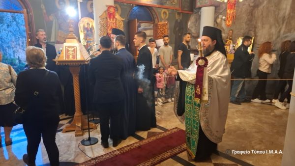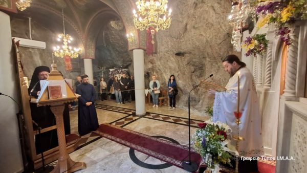 Το απόγευμα της Παρασκευής της Διακαινησίμου, ο Σεβασμιώτατος Μητροπολίτης Αιτωλίας και Ακαρνανίας κ. Δαμασκηνός μετέβη στο βραχομονάστηρο της Αγίας Ελεούσης, που βρίσκεται στο κακοτράχαλο φαράγγι της Κλεισούρας, στην αρχή του όρους Αράκυνθος, βορειοδυτικά του Μεσολογγίου.