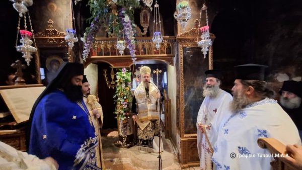 Κατά την απόλυση της Θείας Λειτουργίας ο Σεβασμιώτατος ευχαρίστησε τον Γέροντα Ιωσήφ και τα μέλη της Αδελφότητος για την πρόκληση να προεξάρχει της Ευχαριστιακής Συνάξεως. Ευχαρίστησε και συνεχάρη τους χορούς των ιεροψαλτών για την εξαιρετική απόδοση των ύμνων της εορτής, καθώς και τους προσκυνητές της Ιεράς Μονής, με πρώτο τον αξιότιμο Δήμαρχο Θέρμου κ. Σπύρο Κωνσταντάρα, οι οποίοι αγαπούν και στηρίζουν την Ιερά Μονή και την Αδελφότητα.
