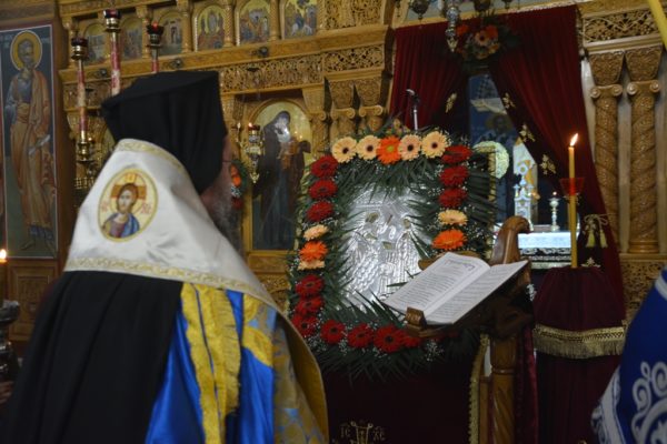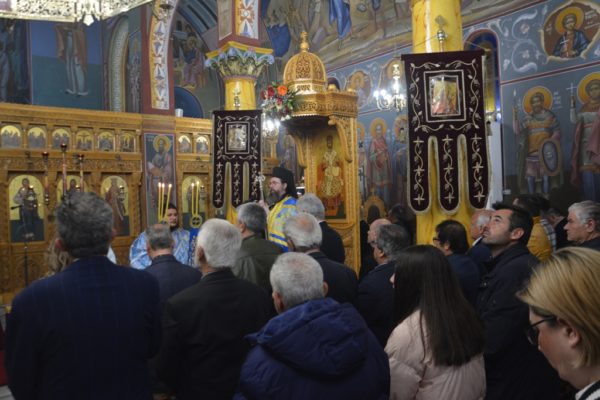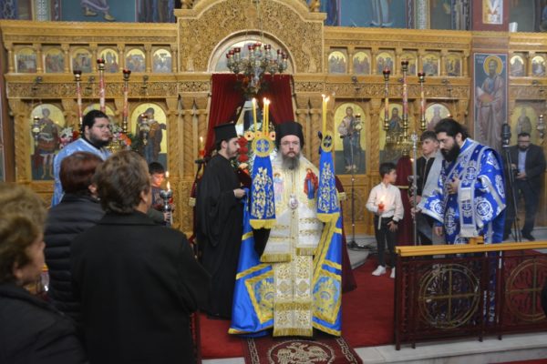 Το απόγευμα της παραμονής, Παρασκευή 24 Μαρτίου 2023, ο Σεβασμιώτατος χοροστάτησε στην Ακολουθία του Εσπερινού, στον πανηγυρίζοντα Ιερό Ναό Ευαγγελισμού της Θεοτόκου Νεοχωρίου και έψαλλε την Δ’ Στάση των Χαιρετισμών της Υπεραγίας Θεοτόκου, σύμφωνα με την τάξη της ημέρας.
