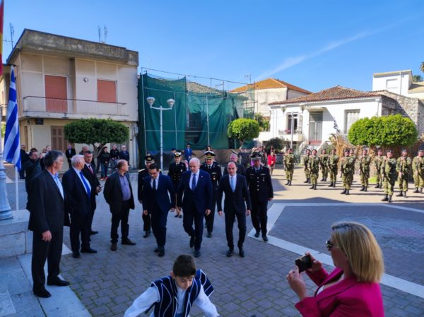 Ταυτόχρονα όμως χαίρεται και ολάκερη η πατρίδα μας και ολόκληρο το γένος των Ελλήνων, γιατί τιμούμε την έναρξη της Ελληνικής Επαναστάσεως και ακούμε νοερά να σαλπίζουν οι σάλπιγγες του αγώνα για την ελευθερία της Ελλάδος. Το φως του ’21 κατήργησε το σκοτάδι της σκλαβιάς και έχουμε χρέος ιερό να αναλογιστούμε την θυσία των προγόνων μας, που πότισαν με το αίμα τους την ελληνική γη. «Αν είμαστε ελεύθεροι πνευματικά το οφείλουμε στην υπακοή της Παναγίας μας και αν είμαστε ελεύθεροι εθνικά το οφείλουμε στο φρόνημα των προγόνων μας» ανέφερε μεταξύ άλλων ο Σεβασμιώτατος και συνέχισε λέγοντας, ότι οι Έλληνες μπορούμε να είμαστε το πρότυπο της ανδρείας, της γενναιότητας και της θυσίας και εμείς εδώ στο ηρωικό και ένδοξο Μεσολόγγι έχουμε μεγαλύτερη ευθύνη, γιατί το Μεσολόγγι είναι ο σημαιοφόρος αυτής της εθνικής πανηγύρεως, αφού εδώ γράφθηκε η ηρωικότερη σελίδα της Ελληνικής Επαναστάσεως.