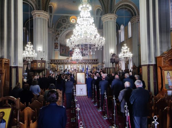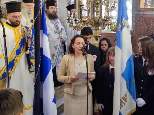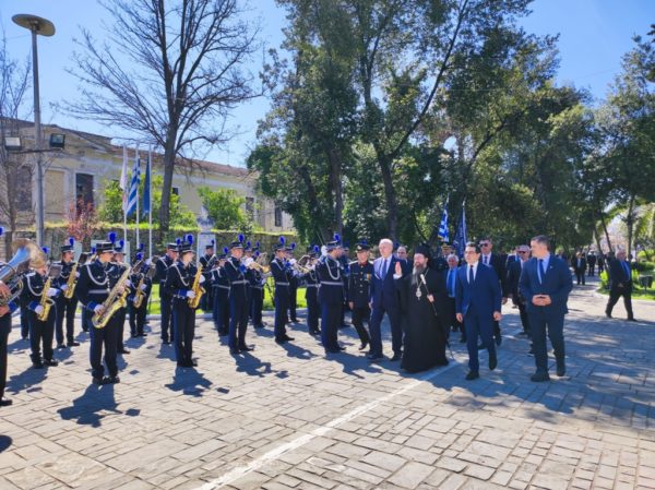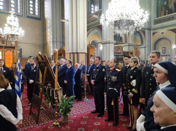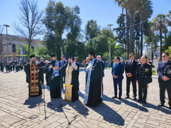 Ακολούθησε η πανηγυρική Δοξολογία για την Εθνική Επέτειο της 25ης Μαρτίου 1821, παρουσία του Εκπροσώπου της Ελληνικής Κυβερνήσεως, κ. Γεωργίου Σταμάτη, Γενικού Γραμματέα Κοινωνικής Αλληλεγγύης και Καταπολέμησης της Φτώχειας, του Δημάρχου της Ιεράς Πόλεως Μεσολογγίου κ. Κωνσταντίνου Λύρου, του Αντιπεριφερειάρχου κ. Λάμπρου Δημητρογιάννη, του Διοικητή του 2/39 Συντάγματος Ευζώνων, του Αστυνομικού Διευθυντή Αιτωλίας, του Διοικητή Π.Υ. Νομού Αιτωλοακαρνανίας, του Διοικητή Π.Υ. Μεσολογγίου και πολλών εκπροσώπων τοπικών αρχών και φορέων.