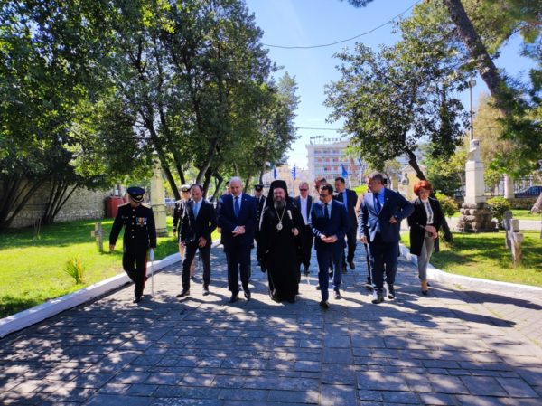 Στη συνέχεια ο Μητροπολίτης Αιτωλίας και Ακαρνανίας τέλεσε επιμνημόσυνη δέηση στον Κήπο των Ηρώων, ενώπιον του Τύμβου, όπου φυλάσσονται τα οστά των Εξοδιτών και οι εκπρόσωποι των αρχών κατέθεσαν στεφάνι. Κατόπιν από την εξέδρα των επισήμων παρακολούθησε την μαθητική και στρατιωτική παρέλαση.