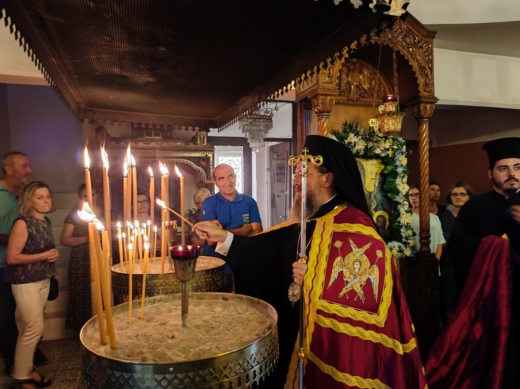 Το πρωί της Τρίτης ο Σεβασμιώτατος μετέβη στην ιστορική Ιερά Μονή Τιμίου Προδρόμου Αναλήψεως (Δερβεκίστης) στην ορεινή Τριχωνίδα, όπου χοροστάτησε στην ακολουθία του Όρθρου και προεξήρχε στην Θεία Λειτουργία, συμπαραστατούμενος από τον Πρωτοσύγκελλο, Αρχιμ. Θεόκλητο Ράπτη και ιερείς της περιοχής.