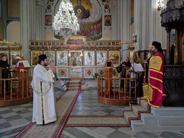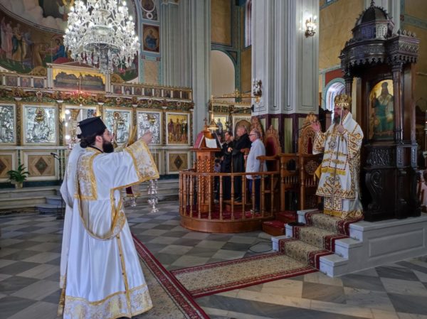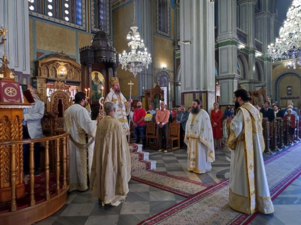 Με τον Σεβασμιώτατο συλλειτούργησαν ο πρωτοπρ. Κωνσταντίνος Δημητρίου, ο πρωτοπρ. Χρήστος Γιαννακάς, ο αρχιδιάκονος Στέφανος Καππές και ο διάκονος Αμβρόσιος Καλλιάφας. Τα ιερά Αναλόγια διακόνησαν ο πρωτοψάλτης κ. Δημήτριος Μαστροσπύρος και ο λαμπαδάριος κ. Αλέξης Ζαρζάνης.