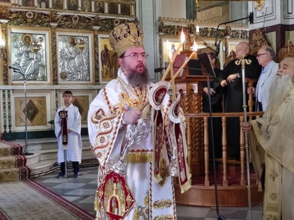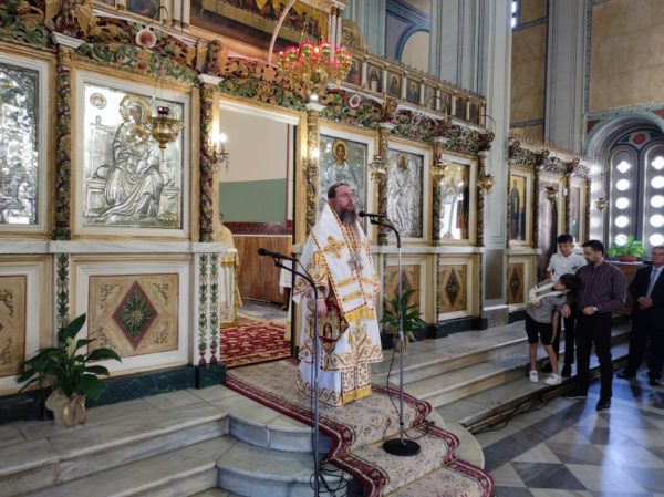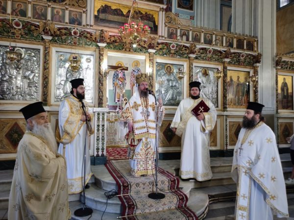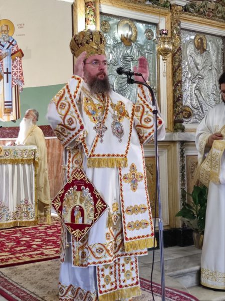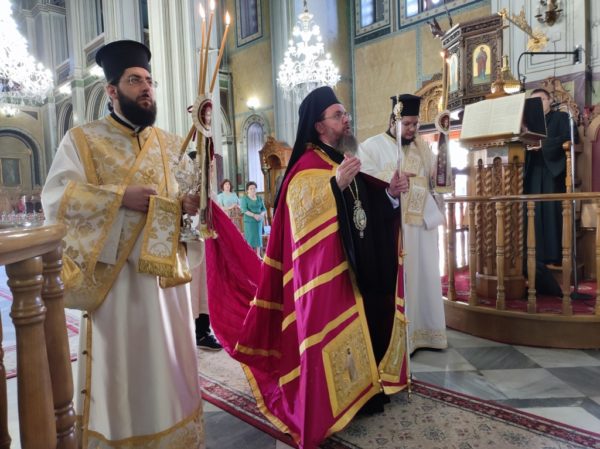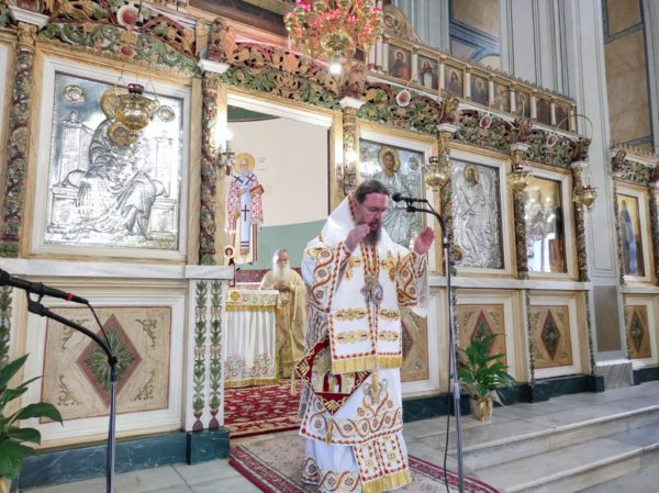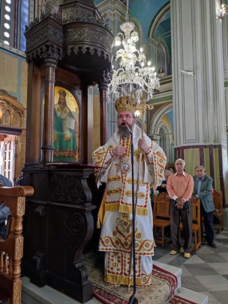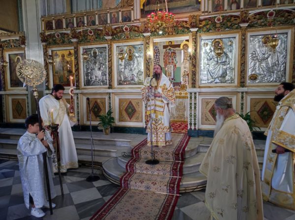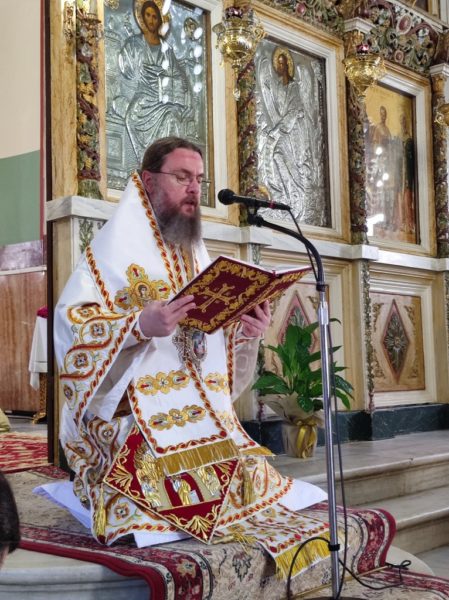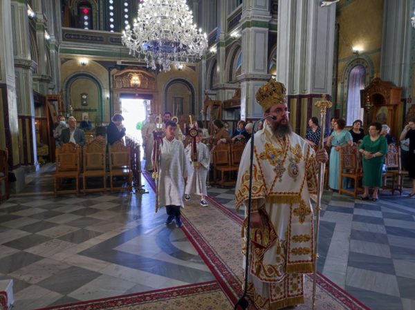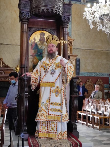 Μιλώντας στους πιστούς που συμμετείχαν στην Θεία Λειτουργία και την Ακολουθία του Εσπερινού ευχήθηκε: «Το Πνεύμα το Άγιο που σήμερα κατήλθε σε όλους μας να το διατηρήσουμε ζωντανό κατά τη διάρκεια της ζωής μας∙ να Του δώσουμε τη δυνατότητα να ενεργεί μέσα μας, να φωτίζει την διάνοια μας, να καταυγάζει τα όμματα της ψυχής μας, να μας χαρίζει την δύναμη, την αντοχή και την ελπίδα της σωτηρίας. Να μας προσφέρει τον δρόμο του φωτός, να απομακρύνει την οδό του σκότους, να μας δίδει τη δυνατότητα να επιλέγουμε το ορθό και να αποστρεφόμαστε το λάθος. Να μας χαρίζει την δύναμη να νικούμε την αμαρτία και να διανύουμε πάντοτε το στάδιο του πνευματικού μας αγώνα, έχοντας την αίσθηση και τη βεβαιότητα της δικής Του ενδυνάμωσης μέσα στη ζωή μας.
