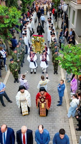 Στην ιερά Λιτανεία, υπό τους ήχους της Φιλαρμονικής του Δήμου Αγρινίου και άλλων Φιλαρμονικών ομόρων Δήμων συμμετείχαν: ως εκπρόσωπος της Ελληνικής Κυβέρνησης η Υφυπουργός Κοινωνικής Συνοχής και Οικογένειας κ. Μαρία – Αλεξάνδρα Κεφάλα, ο Δήμαρχος Αγρινίου κ. Γεώργιος Παπαναστασίου, ο Περιφερειάρχης Δυτικής Ελλάδος κ. Νεκτάριος Φαρμάκης, Βουλευτές, Αντιδήμαρχοι, Πολιτευτές του Νομού, Εκπρόσωποι των Δημοτικών και των Στρατιωτικών αρχών της περιοχής, στρατιωτικό άγημα του 2/39 Συντάγματος Ευζώνων, αντιπροσωπείες εκπαιδευτικών και μαθητών των Σχολείων της πόλεως, τμήματα και αντιπροσωπείες πολιτιστικών και λαογραφικών Συλλόγων.