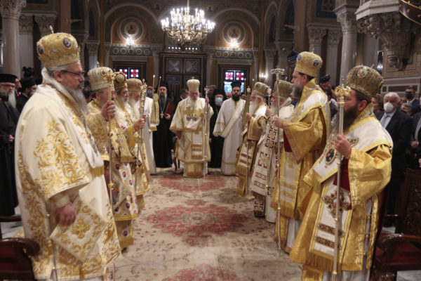 Με τον Μακαριώτατο συλλειτούργησαν οι Σεβασμιώτατοι Μητροπολίτες Σάμου και Ικαρίας κ. Ευσέβιος, Δημητριάδος και Αλμυρού κ. Ιγνάτιος, Σιδηροκάστρου κ. Μακάριος, Νεαπόλεως και Σταυρουπόλεως κ. Βαρνάβας, Λευκάδος και Ιθάκης κ. Θεόφιλος, Νέας Ιωνίας κ. Γαβριήλ, Λαρίσης και Τυρνάβου κ. Ιερώνυμος, Πολυανής και Κιλκισίου κ. Βαρθολομαίος.