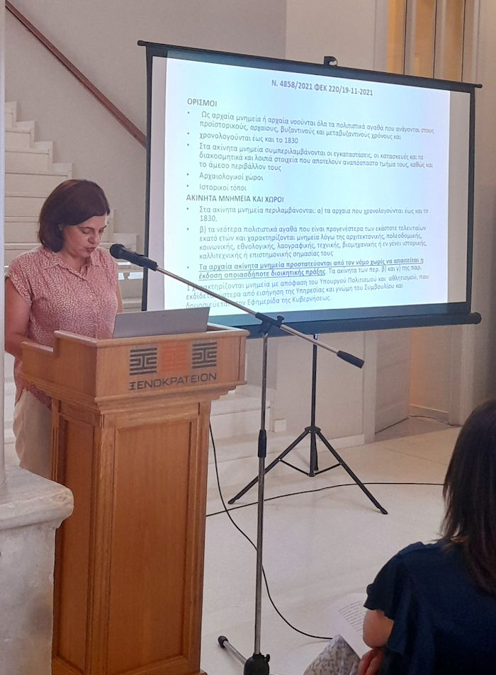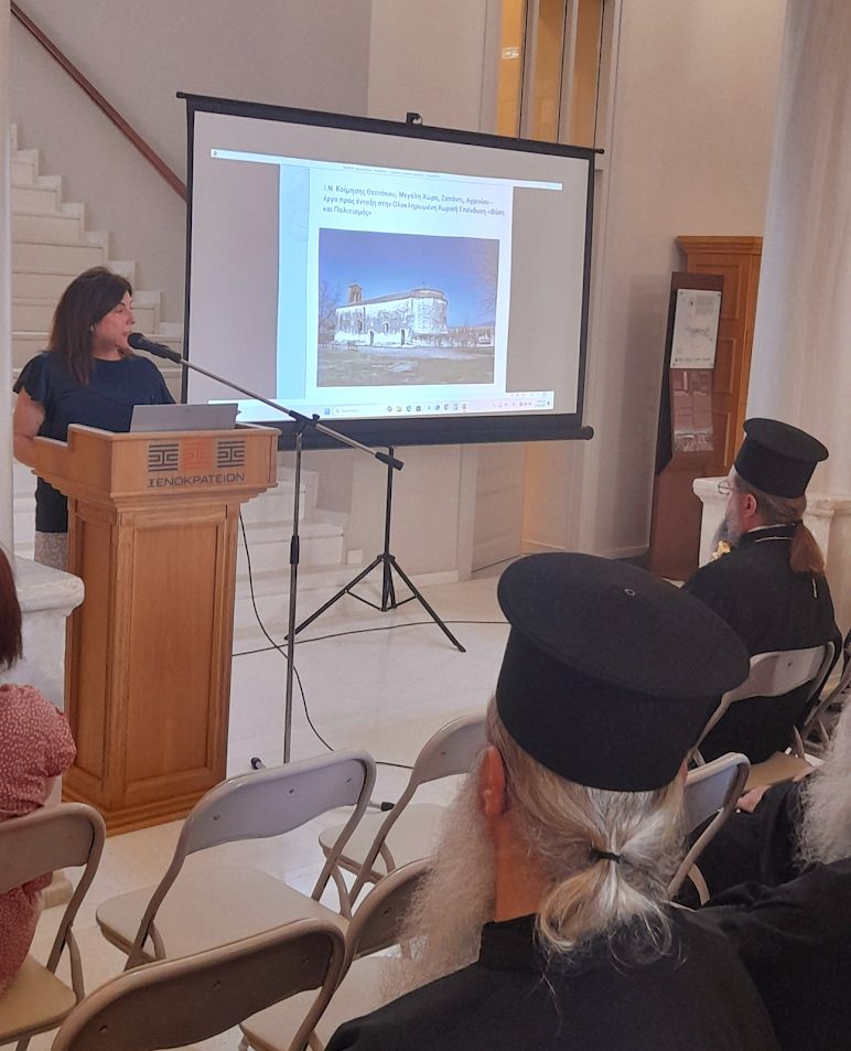 Ακολούθησε εισήγηση από την Δρ. Αικατερίνη Χαμηλάκη, Αρχαιολόγο ΕΦΑ Αιτωλοακαρνανίας και Λευκάδας για το θεσμικό πλαίσιο προστασίας κινητών και ακίνητων μνημείων. Η κα Χαμηλάκη επίσης παρουσίασε τα σημαντικότερα εκκλησιαστικά μνημεία της Αιτωλίας.