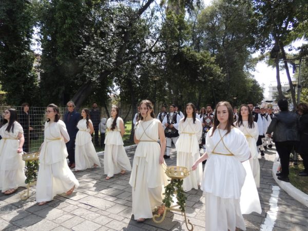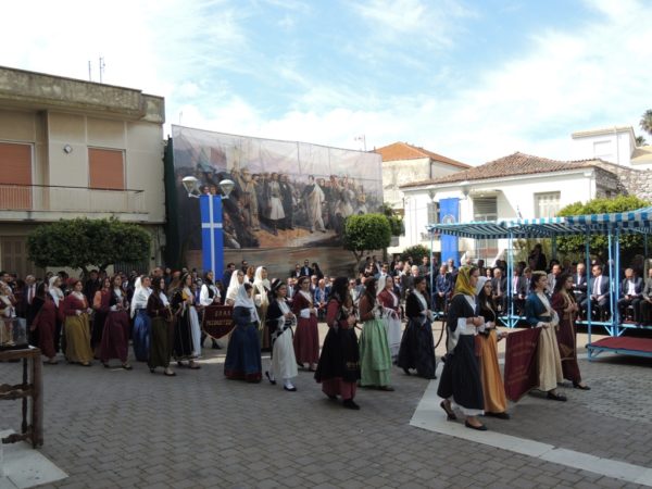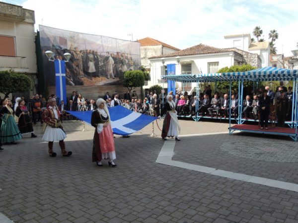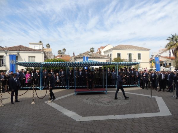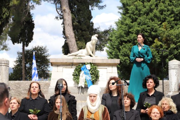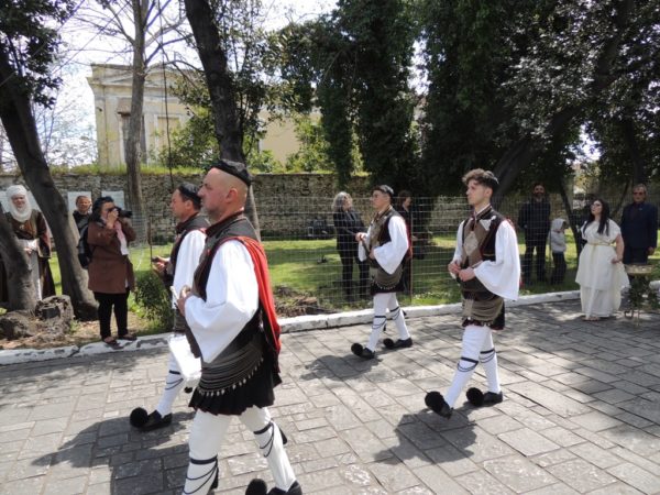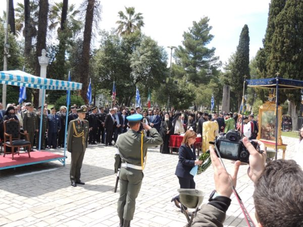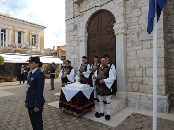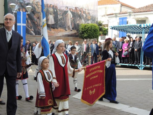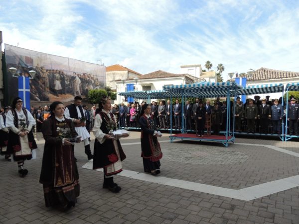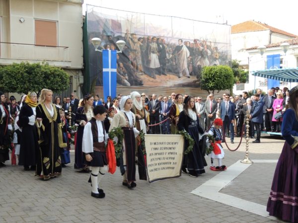 Ακολούθησαν, η κατάθεση στεφάνου από την Πρόεδρο της Ελληνικής Δημοκρατίας, η εκφώνηση του πανηγυρικού της ημέρας από τον εκπρόσωπο της Ελληνικής Κυβερνήσεως, Υφυπουργό κ. Νικόλαο Χαρδαλιά, ενώ η υψίφωνος κα Βίβιαν Ντάγλας απέδωσε το μοιρολόι «Να ζει το Μεσολόγγι».