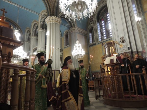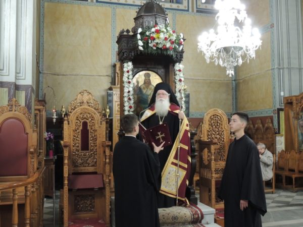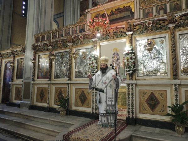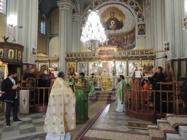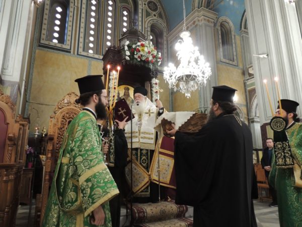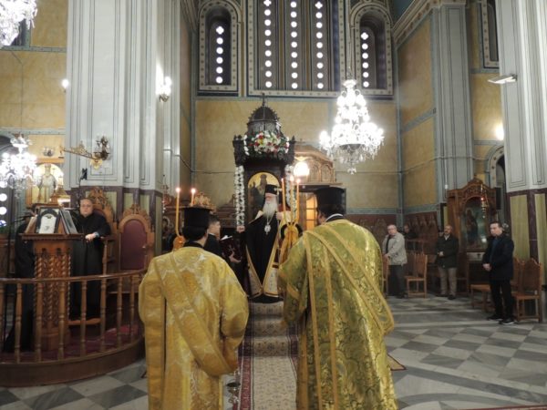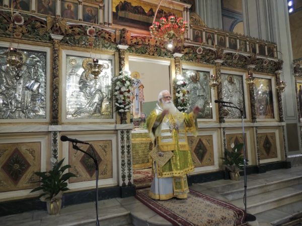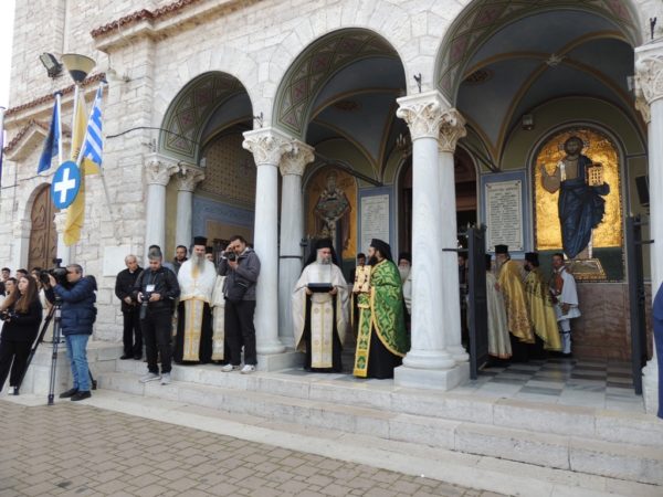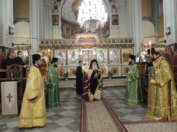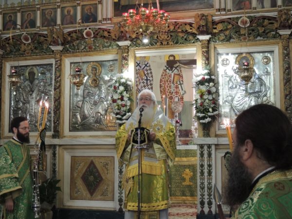 Με επίκεντρο τούτο τον ιστορικό Μητροπολιτικό Ναό, καθώς κλείνουμε γόνυ σώματος, ψυχής και καρδιάς, ενώπιον του ιερού Εικονίσματος της Εξόδου και ασπαζόμενοι, με ευλάβεια, τον Τίμιο Σταυρό του Μακαριστού Προκατόχου μας και μεγάλου Εθνοϊερομάρτυρος Επισκόπου Ρωγών Ιωσήφ, προσφέρουμε την Αναίμακτη Λατρεία για να τιμήσουμε τους προγόνους, μας αλλά και να εορτάσουμε, με περισσή κατάνυξη και μεγαλοπρέπεια, την μεγάλη Δεσποτική εορτή της Βαϊοφόρου Εισόδου του Κυρίου μας στα Ιεροσόλυμα.