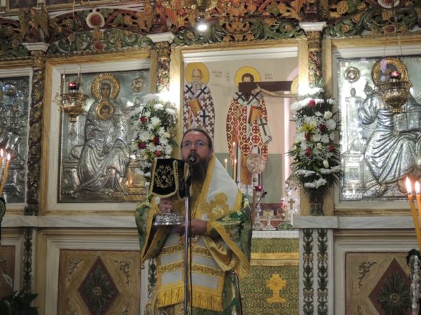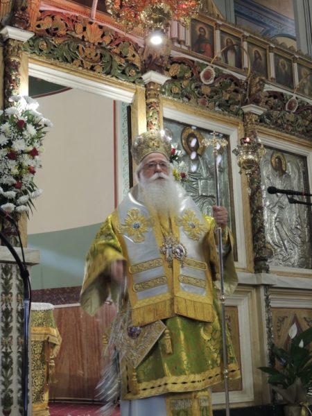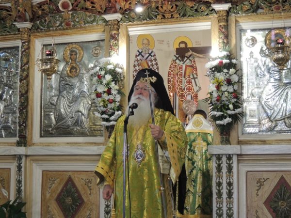 «Αναλογιζόμουν όση ώρα έβλεπα να παρευλάνουν χιλιάδες άνθρωποι κατά την χθεσινή λιτανευτική πομπή, τί ήταν αυτό που κράτησε τους πατέρες μας σε αυτό «Αλωνάκι» ζωντανούς στην ψυχή και στο σώμα, με ένα μοναδικό και ανεπανάληπτο τρόπο;  Τί ήταν αυτό που κράτησε τετρακόσια χρόνια τούτο το Γένος ζωντανό και με ελπίδα να μπορεί να διεκδικήσει και να κερδίσει την ελευθερία του; Το πρώτο και μοναδικό είναι η ορθόδοξη πίστη και παράδοσή μας» ανέφερε μεταξύ άλλων ο Σεβασμιώτατος.