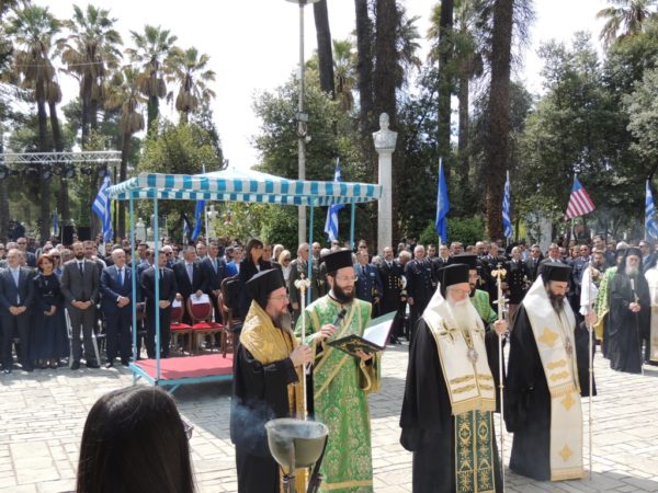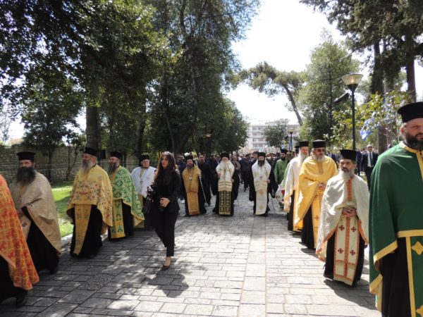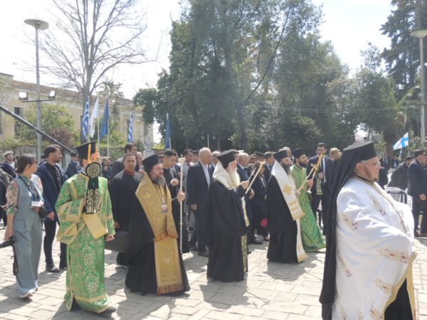 Χαρά ανεκλάλητη πλημμυρίζει τις καρδιές μας, διότι συνεορτάζουμε τούτη τη μεγάλη και φαιδρά θρησκευτικοεθνική εορτή μας με τη συμμετοχή δύο Αρχιερέων οι οποίοι κοσμούν την Ιεραρχία της Εκκλησίας της Ελλάδος. Ο πρώτος είναι ο Θεοφιλέστατος Επίσκοπος Τεγέας κ. Θεόκλητος, ο οποίος συμμετέχει στις λατρευτικές μας εκδηλώσεις, ως εκπρόσωπος του Σεβασμιωτάτου Μητροπολίτου Μαντινείας και Κυνουρίας κ. Αλέξανδρου, αφού η Τρίπολη, η ηρωική αυτή πρωτεύουσα του Μωριά είναι φέτος η τιμώμενη πόλη των επετειακών μας εκδηλώσεων. Ο δεύτερος Αρχιερεύς είναι ο Μητροπολίτη Δημητριάδος και Αλμυρού κ. Ιγνάτιος. Αισθάνθηκα καρδιακή την ανάγκη να του απευθύνω την πρόσκληση να είναι ο προεξάρχων της εφετινής πανηγύρεως, κατά την πρώτη συμμετοχή μου ως Επισκόπου σας στις λαμπρές αυτές επετειακές εκδηλώσεις. Και τούτο είναι η ελάχιστη έκφραση της υιικής μου αγάπης και της μεγάλης μου ευγνωμοσύνης προς το πρόσωπό του, για όσα έπραξε κατά την διάρκεια της διακονίας μου πλησίον του, και κυρίως για όσα ενήργησε για την ανάδειξή μου σε Μητροπολίτη αυτού του ευλογημένου αγιοτόκου και ηρωοοτόκου τόπου».
