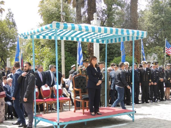 Η κυρία Σακελλαροπούλου, μετά τη Δοξολογία στον Ιερό Ναό του Αγίου Σπυρίδωνος, την παρέλαση και την κατάθεση στεφάνου στον Κήπο των Ηρώων, δήλωσε ότι «Τιμάμε σήμερα τους υπερασπιστές της Ιερής Πόλης του Μεσολογγίου. Mε την ηρωική τους έξοδο, και την αυτοθυσία τους εμπρός στην άσπονδη πλημμύρα των αρμάτων των oθωμανών πολιορκητών, μας δίδαξαν πώς να ζούμε και να πεθαίνουμε ελεύθεροι».