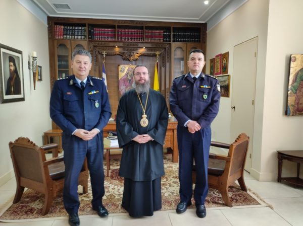 Κατόπιν ο Σεβασμιώτατος μετέβη στα Γραφεία της Ιεράς Μητροπόλεως, στην Ιερά Πόλη του Μεσολογγίου, όπου δέχθηκε την εθιμοτυπική επίσκεψη του Αστυνομικού Διευθυντή Ακαρνανίας κ. Δημητρίου Γαλαζούλα, ο οποίος συνοδευόταν από τον Αστυνομικό Διευθυντή κ. Κωνσταντίνο Σπυρόπουλο με τους οποίους συζήτησαν θέματα κοινού ενδιαφέροντος.