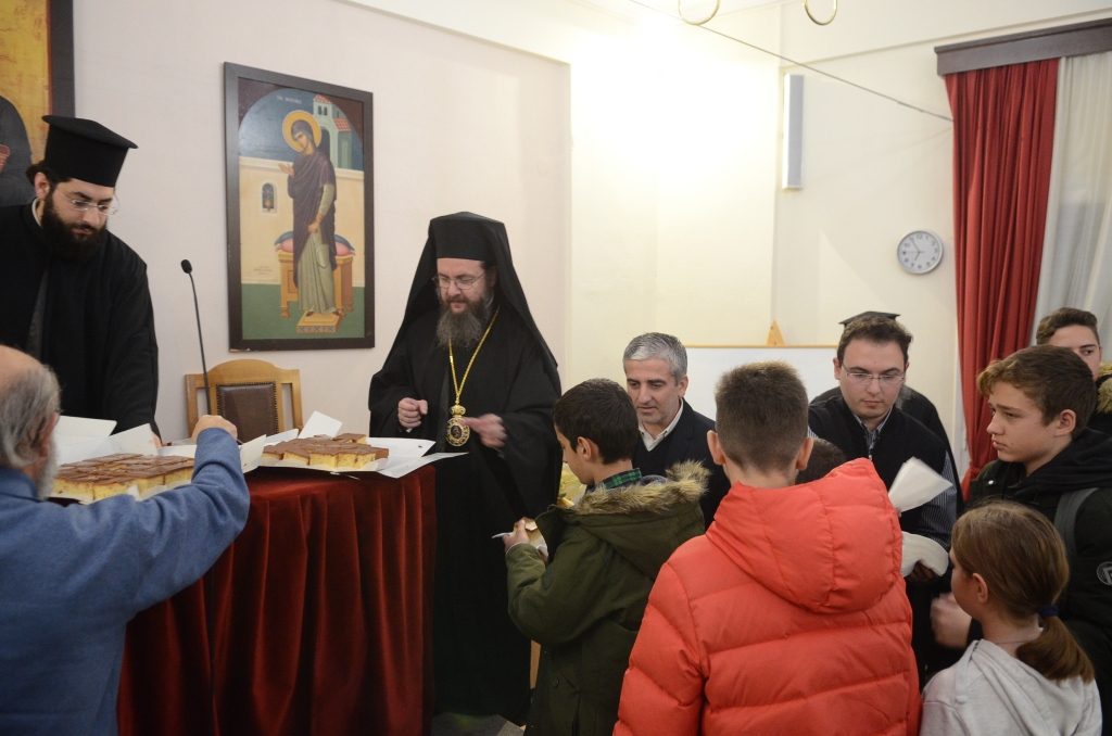 Ο Σεβασμιώτατος ευλόγησε την βασιλόπιττα του Σχολείου και μίλησε στα παιδιά τονίζοντας κυρίως, ότι ο Χριστός είναι ο αληθινός και αιώνιος φίλος των παιδιών που τα αγαπά πολύ και ποτέ δεν θα τα προδώσει.