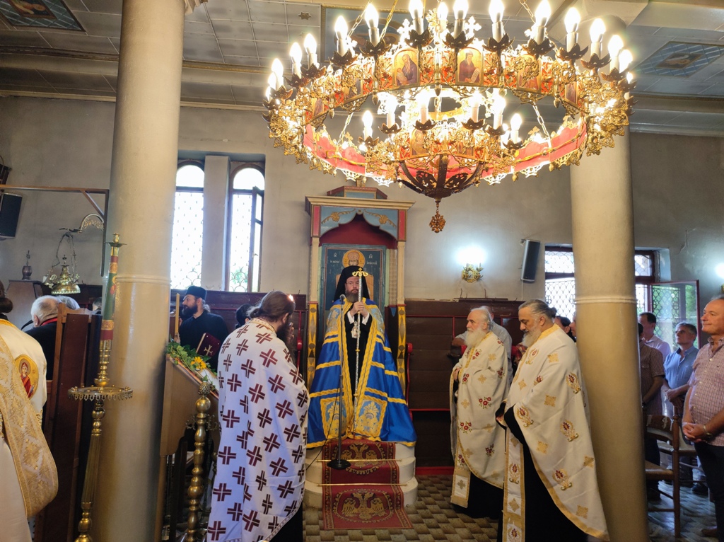 Κηρύσσοντας τον θείο λόγο ο Σεβασμιώτατος ανέφερε, ότι εορτάζουμε την τελευταία Θεομητορική εορτή του Αυγούστου, που είναι ο μήνας της Παναγίας, αλλά και του εκκλησιαστικού έτους. Η σημερινή εορτή δεν έχει σχέση με κάποιο γεγονός από την ζωή της Παναγίας μας. Εορτάζουμε την Κατάθεση της Τιμίας της Ζώνης και καλούμαστε να αναφερθούμε στην Υψηλότερα των ουρανών και την καθαρότερο λαμπηδόνων ηλιακών.