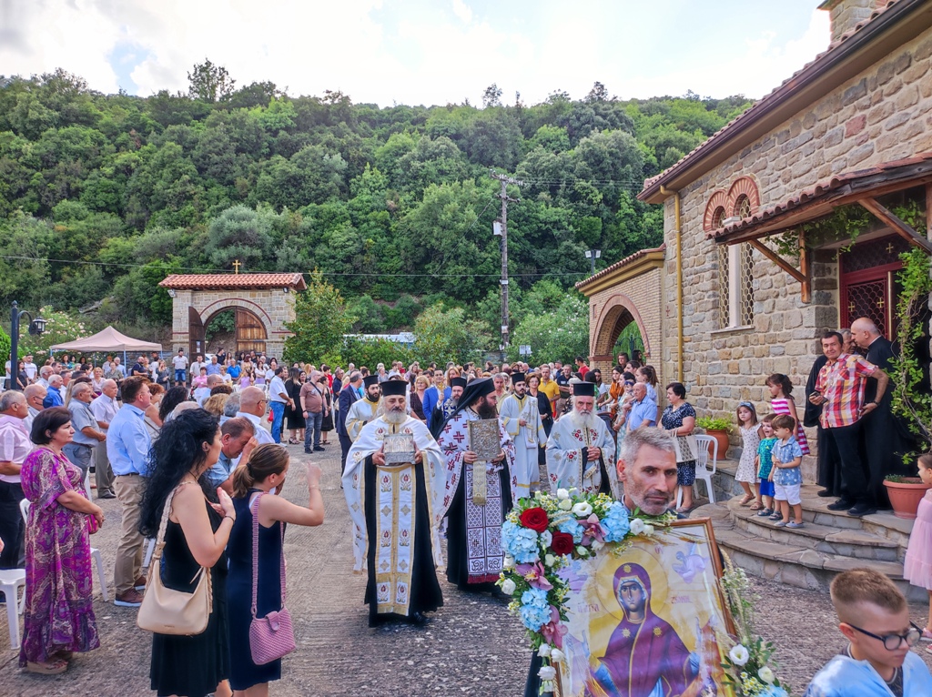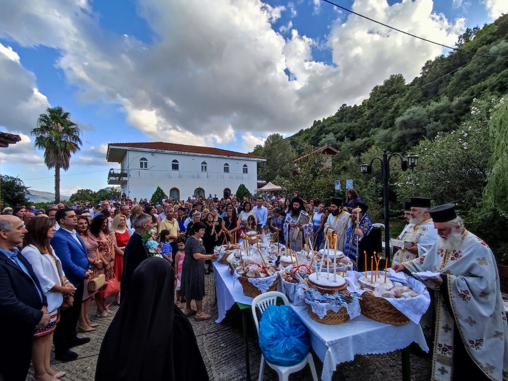 Ακολούθησε η λιτάνευση της Ιεράς Εικόνος της Παναγίας πέριξ της Ιεράς Μονής και η ευλόγηση των άρτων που προσέφεραν οι προσκυνητές της Μονής.