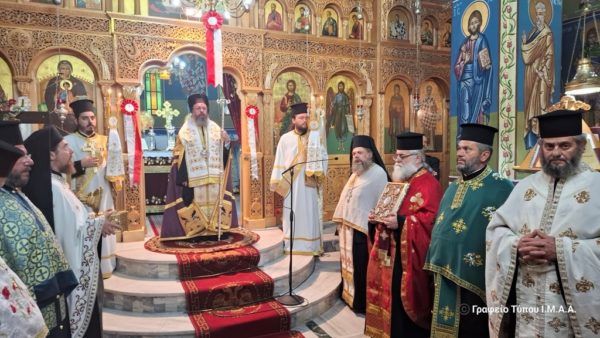 Στην ακολουθία του πανηγυρικού Εσπερινού που τελέσθηκε την παραμονή της εορτής, Τετάρτη 14 Μαΐου 2025 στο Νέο Χαλκιόπουλο Βάλτου, στον Ιερό Ναό του Αγίου Γεωργίου χοροστάτησε ο Σεβασμιώτατος Μητροπολίτης Αιτωλίας και Ακαρνανίας κ. Δαμασκηνός. Αμέσως μετά πραγματοποιήθηκε η Λιτάνευση των Ιερών Λειψάνων και της Ιεράς Εικόνος του Αγίου στους δρόμους του Νέου Χαλκιόπουλου.