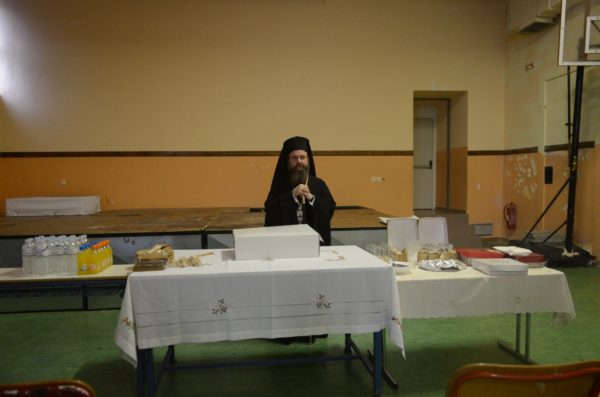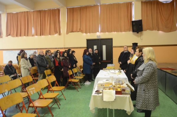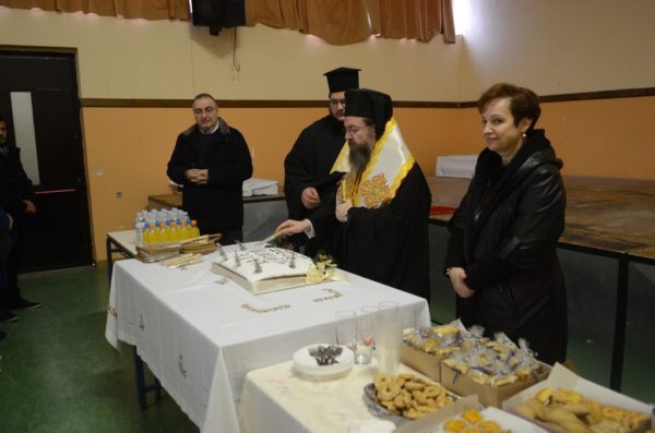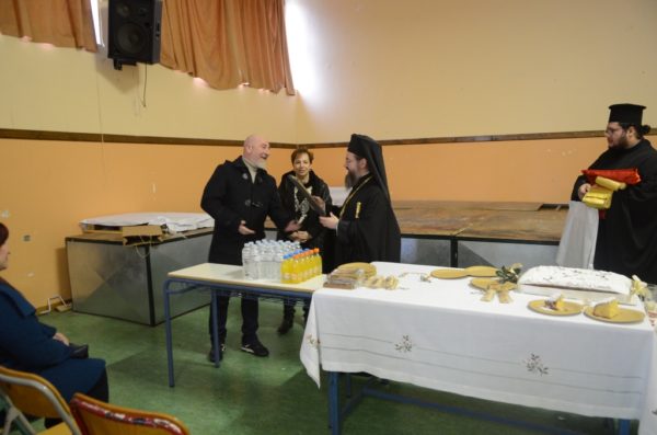 Στη συνέχεια ο Σεβασμιώτατος ευλόγησε την βασιλόπιττα του Συλλόγου Διδασκόντων και μίλησε στους καθηγητές του Σχολείου τονίζοντας, ότι η εκπαιδευτική ιδιότητα μαζί με την γονεϊκή αποτελούν δύο κορυφαίες σταθερές που στηρίζουν το κοινωνικό σύνολο και οφείλουμε να στηρίζουμε έμπρακτα τους εκπαιδευτικούς στην επιτέλεση του διδακτικού τους έργου.