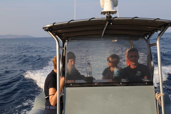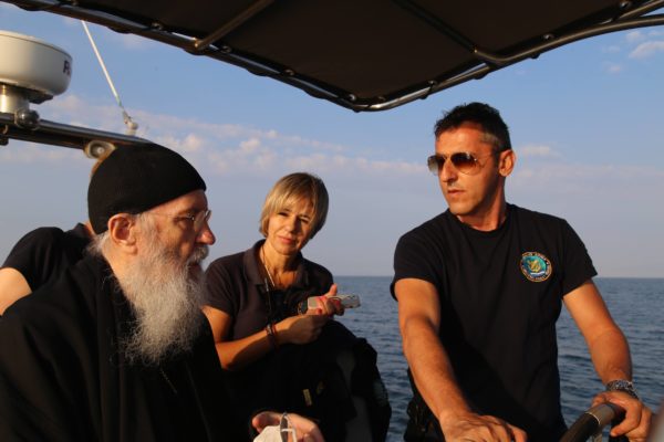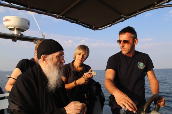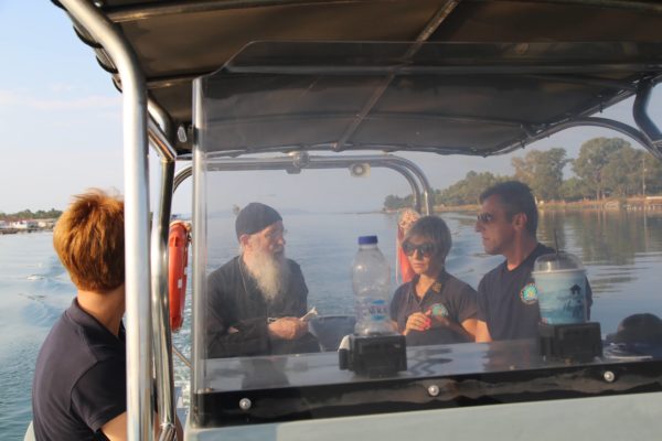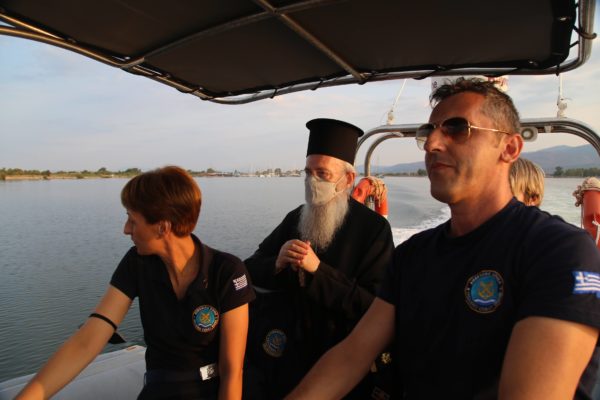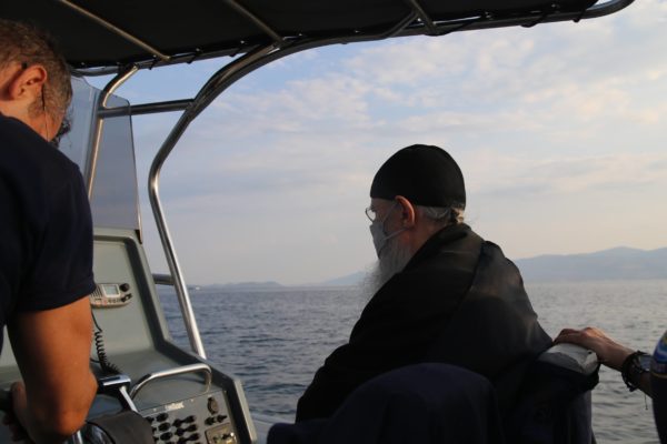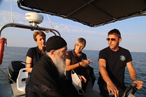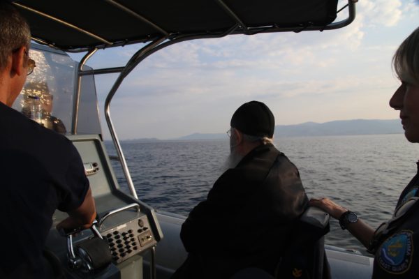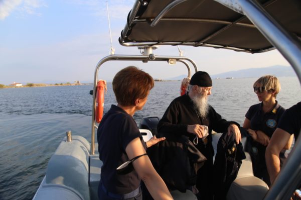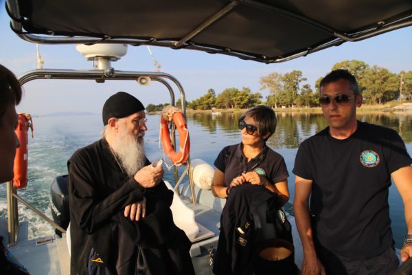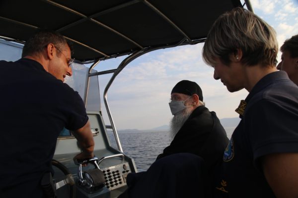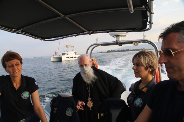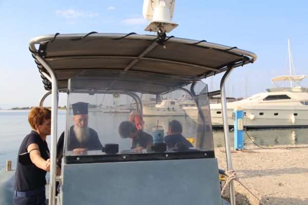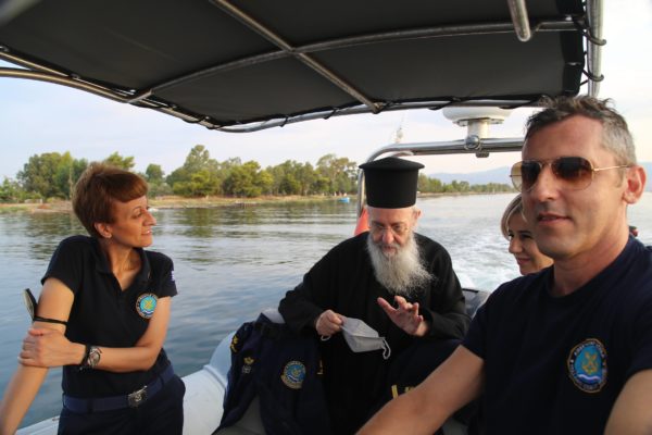 Ο Σεβασμιώτατος επιβιβάστηκε σε περιπολικό σκάφος του Λιμεναρχείου Μεσολογγίου συνοδευόμενος από την Λιμενάρχη, Υποπλοίαρχο Λ.Σ. κ. Κυριακή Σκανδάλου, τον κυβερνήτη του σκάφους, Σημαιοφόρο Λ.Σ. κ. Νεκτάριο Ζησιμόπουλο, τον Ανθυπασπιστή Λ.Σ. κ. Γεώργιο Κακούτη και την Ανθυπασπιστή Λ.Σ. κ. Γλυκερία Σοροβού.
