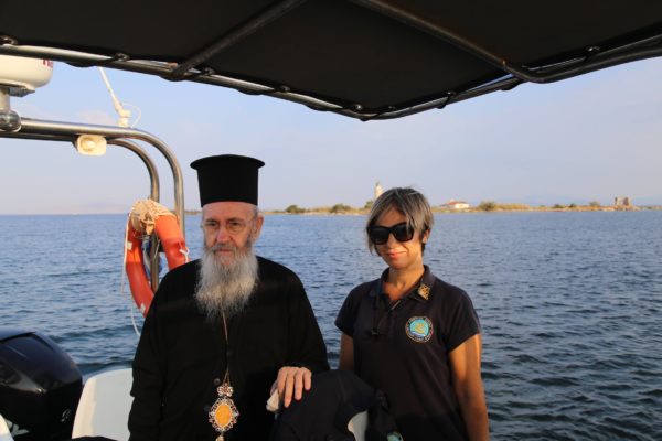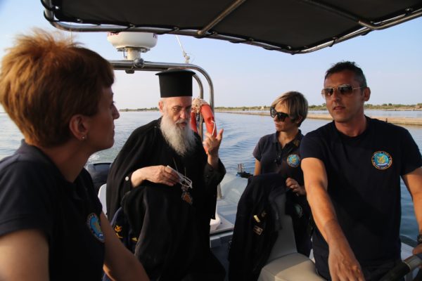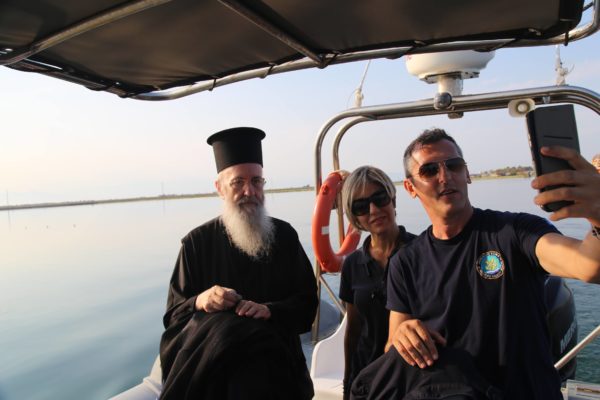 Ο Σεβασμιώτατος εξέφρασε τον ενθουσιασμό του και τις ευχαριστίες του στην κυρία Λιμενάρχη και τους συνεργάτες της για την υποδοχή, την φιλοξενία και την ξενάγηση στη Λιμνοθάλασσα.