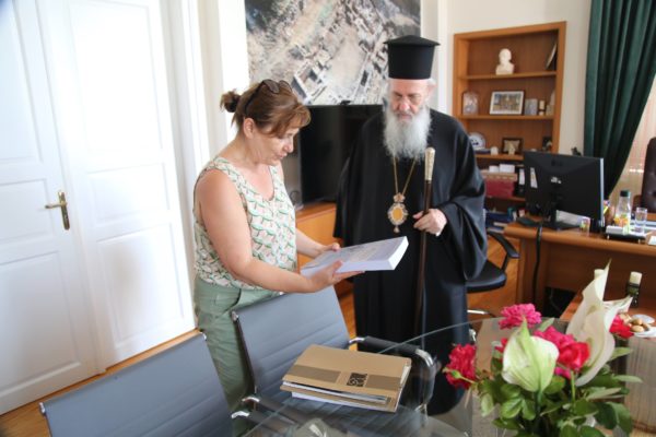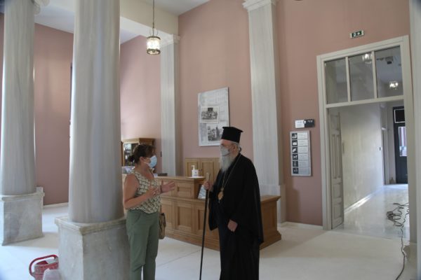 Στη συνέχεια επισκέφθηκε την Εφορεία Αρχαιοτήτων Αιτωλοακαρνανίας και Λευκάδος, όπου συναντήθηκε με την διευθύντρια δρ Ολυμπία Βικάτου, η οποία ενημέρωσε τον Σεβασμιώτατο για τις δράσεις της Εφορείας στο Μεσολόγγι και στην Ναύπακτο, αλλά και σε ολόκληρη την Αιτωλοακαρνανία.