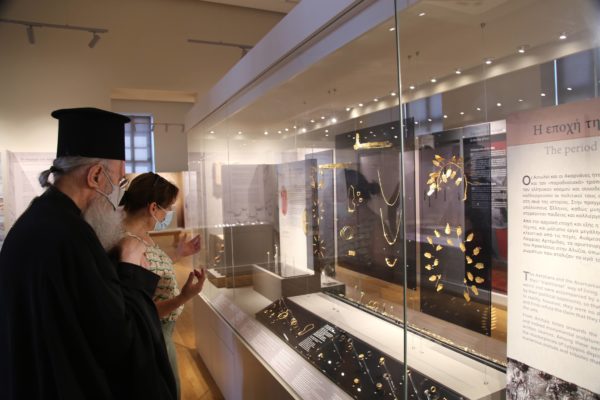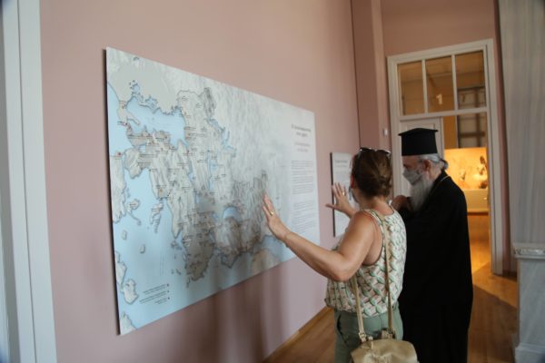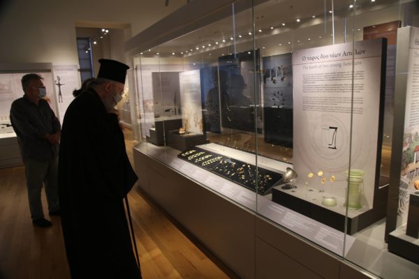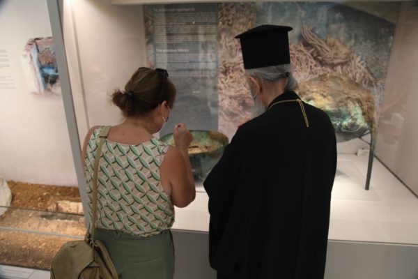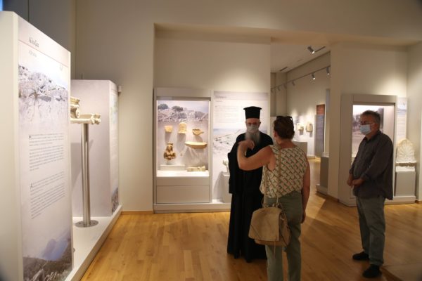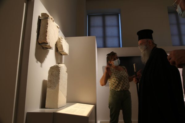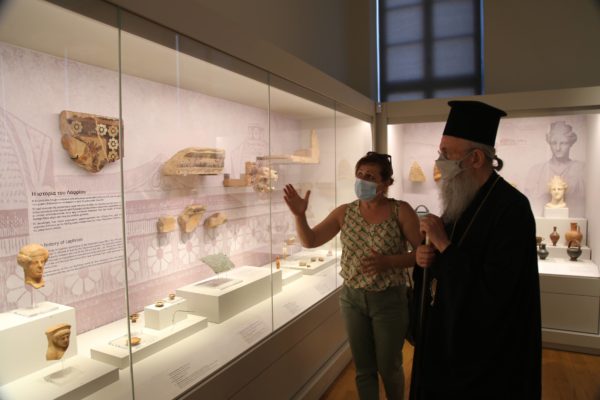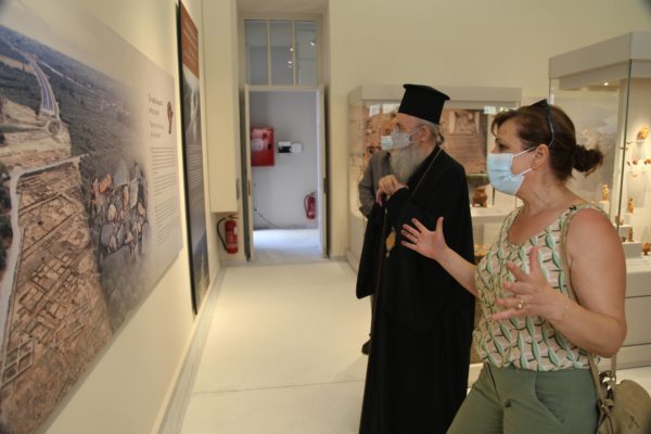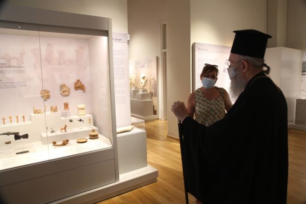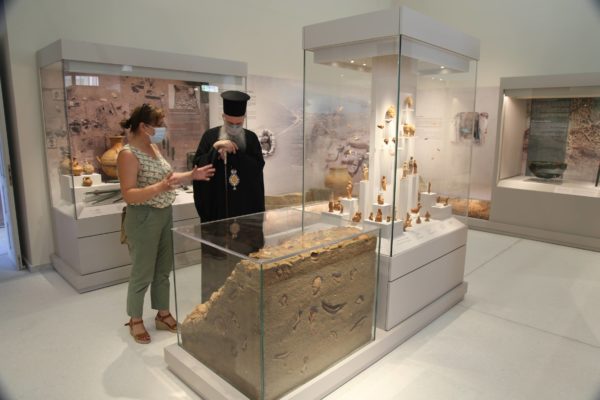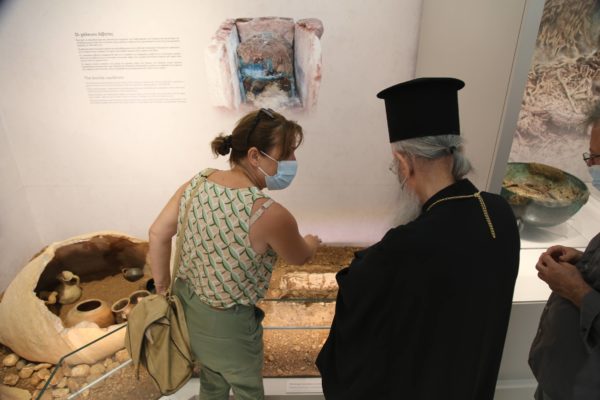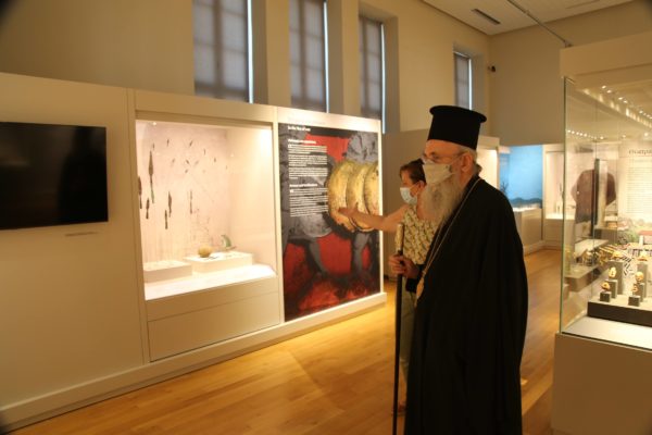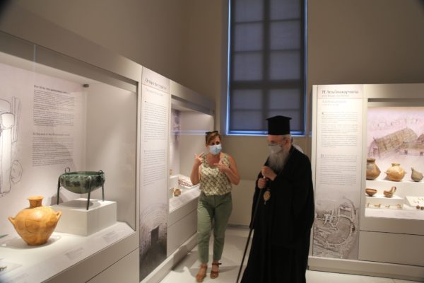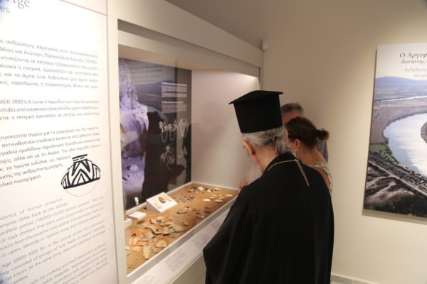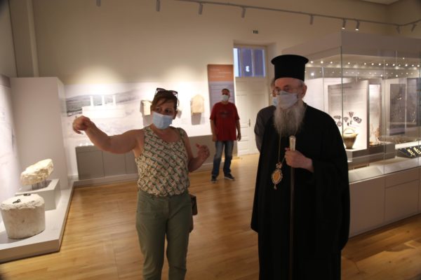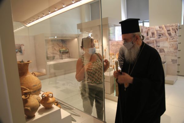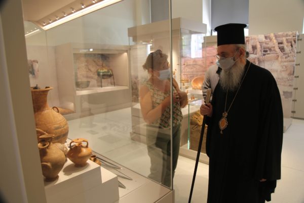 Ο Σεβασμιώτατος δήλωσε κατάπληκτος από την εξαιρετικά ενδιαφέρουσα έκθεση που δείχνει την ιστορία των τόπων και εξέφρασε τις ευχαριστίες του και τα συγχαρητήριά του στην κ. Βικάτου και τους συνεργάτες της για την άρτια οργάνωση του μουσείου.