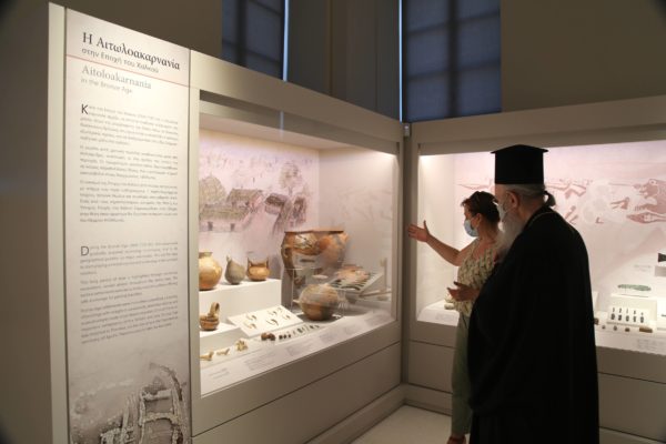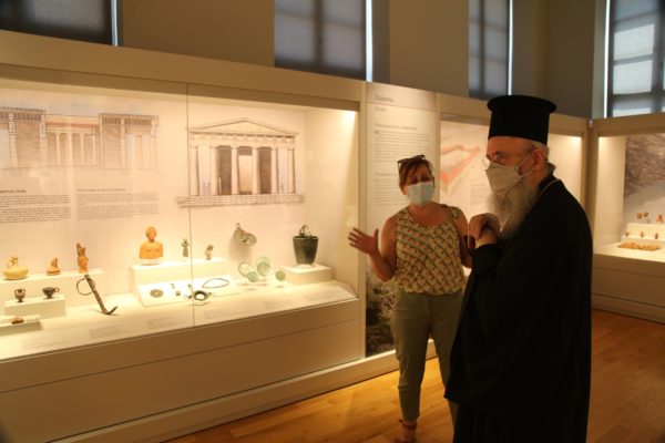 Στη συνέχεια η κα Βικάτου συνόδευσε τον Μητροπολίτη Ναυπάκτου στο Ξενοκράτειο Αρχαιολογικό Μουσείο Ιεράς Πόλεως Μεσολογγίου και τον ξενάγησε στην μόνιμη έκθεση του μουσείου.