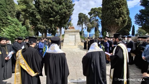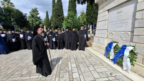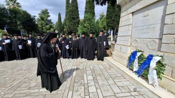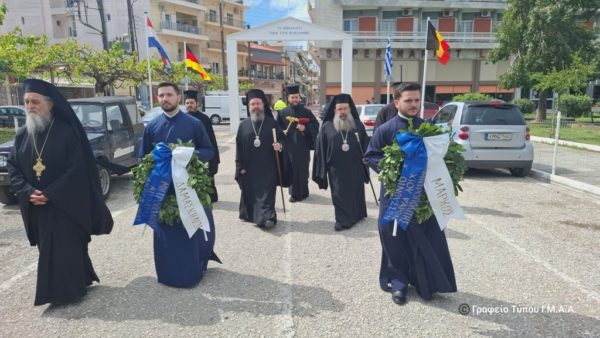 Μετά την Σύναξη σύσσωμος ο Ιερός Κλήρος, με επικεφαλής τους δύο Αρχιερείς, προηγουμένης της Φιλαρμονικής του Δήμου Ιεράς Πόλεως Μεσολογγίου, κατευθύνθηκαν στον Κήπο των Ηρώων της Ιεράς Πόλεως, όπου ενώπιον του Τύμβου, που φυλάσσονται τα οστά των πεσόντων κατά την Έξοδο, τελέσθηκε επιμνημόσυνη δέηση και οι δύο Μητροπολίτες κατέθεσαν στεφάνι.