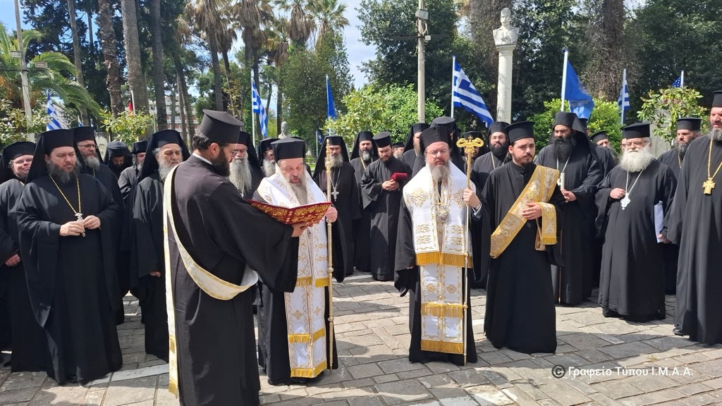 Σήμερα, όμως, αδελφοί μου, θέλω να καλωσορίσω και επίσημα τον Σεβασμιωτατο Μητροπολίτη Χίου, Ψαρών και Οινουσσών κ. Μάρκο, ο οποίος ανταποκρίθηκε στην πρόσκλησή μας και αύριο θα είναι ο κεντρικός ομιλητής στην επετειακή γενική ιερατική σύναξη που θα πραγματοποιηθεί εδώ, στην Ιερά Πόλη του Μεσολογγίου και στον ιστορικό Ιερό Ναό της Αγίας Παρασκευής, με τη συμμετοχή όλων των Εφημερίων της Ιεράς Μητροπόλεως Αιτωλίας και Ακαρνανίας. Είναι ένας καινούργιος θεσμός που εντάχθηκε στο επετειακό πρόγραμμα του Δήμου της Ιεράς Πόλεως, ο οποίος ολοκληρώνεται με το ετήσιο προσκύνημα ολοκλήρου του Εφημεριακού Κλήρου στον Κήπο των Ηρώων και με την τέλεση επιμνημόσυνου δεήσεως.