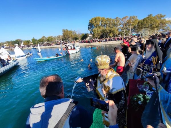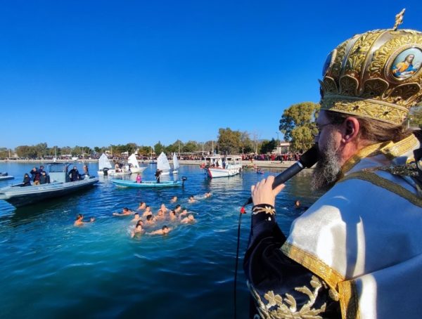 Πολλοί νέοι βούτηξαν στα κρύα νερά για να ανασύρουν τον Τίμιο Σταυρό. Ο πρώτος έλαβε από τον Σεβασμιώτατο, ως ευλογία, έναν χρυσό σταυρό και οι υπόλοιποι αναμνηστικό δώρο.