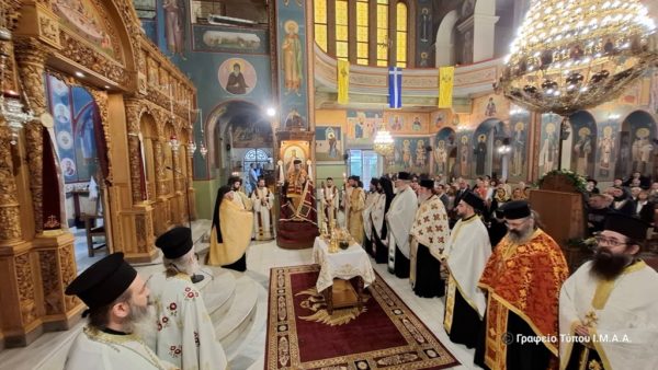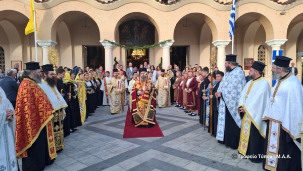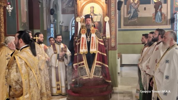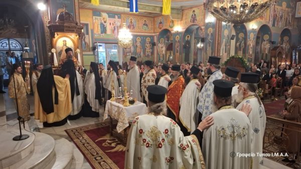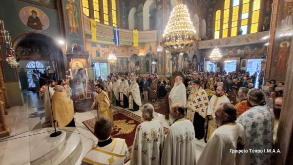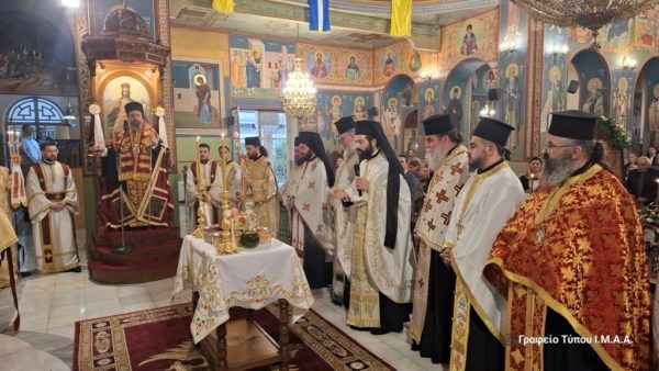 Ώρα 07:00’: Όρθρος και Πανηγυρική Πολυαρχιερατική Θεία Λειτουργία, στον νέο Ιερό Ναό, ιερουργούντων των Σεβασμιωτάτων Μητροπολιτών Νέας Κρήνης και Καλαμαριάς κ. Ιουστίνου, Πολυανής και Κιλκισίου κ. Βαρθολομαίου, Φλωρίνης, Πρεσπών και Εορδαίας κ. Ειρηναίου και Αιτωλίας και Ακαρνανίας κ. Δαμασκηνού.