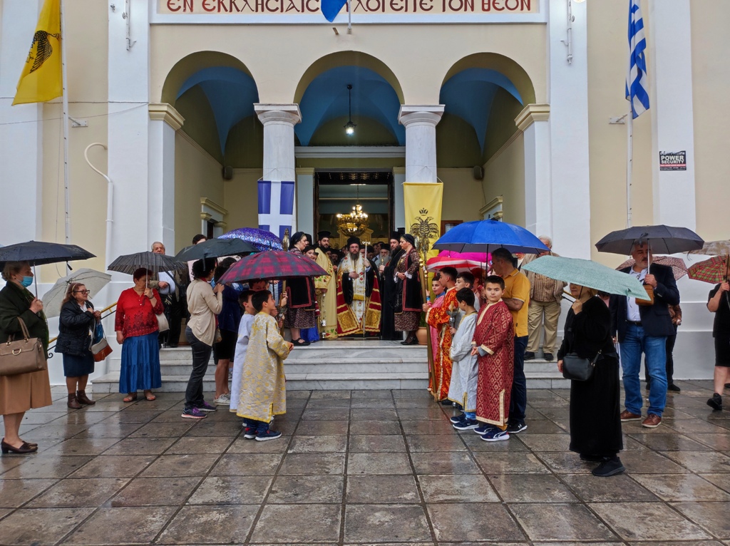 Το Ιερό Λείψανο υποδέχθηκε στον προαύλιο χώρο του Ναού, ο Σεβασμιώτατος Μητροπολίτης Αιτωλίας και Ακαρνανίας κ. Δαμασκηνός, με τη συμμετοχή του Ιερού Κλήρου της περιοχής, του Περιφερειάρχη Δυτικής Ελλάδος κ. Νεκτάριου Φαρμάκη, του Αντιπεριφερειάρχη κ. Θανάση Μαυρομμάτη, του Αντιδημάρχου Αγρινίου κ. Μίμη Σκορδόπουλου και πλήθους πιστών, παρά τις αντίξοες καιρικές συνθήκες.