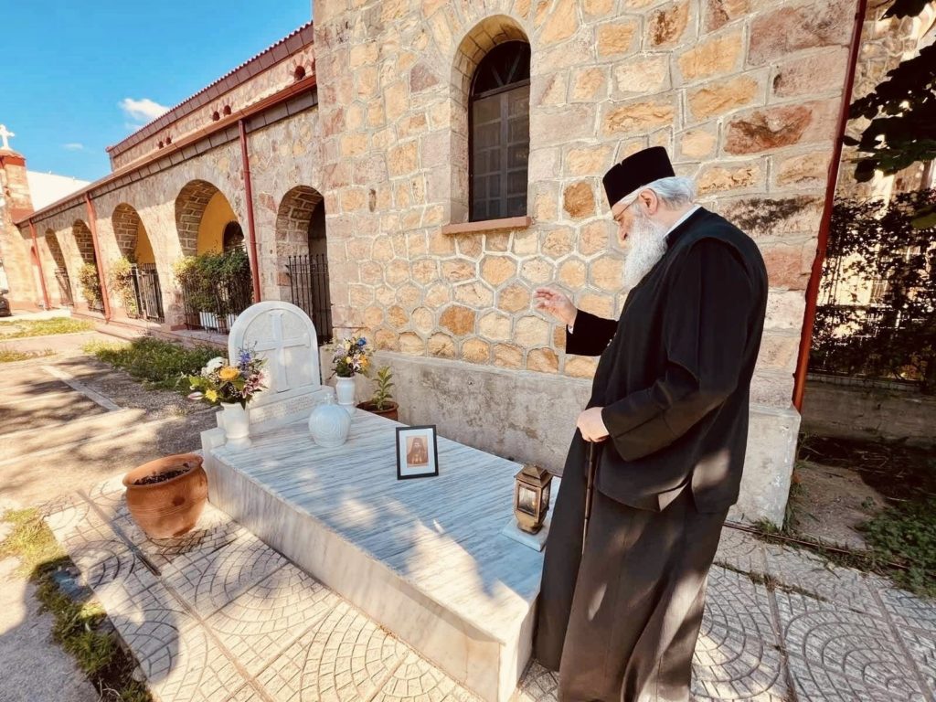 Μετά τη Θεία Λειτουργία τελέσθηκε τρισάγιο στο τάφο του Ιεράρχου.
