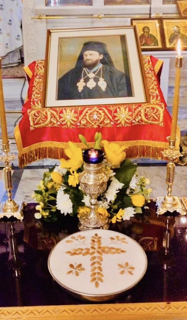 Ο τάφος του μακαριστού Ιεράρχου βρίσκεται στο προαύλιο χώρο του Αγίου Ελευθερίου. Ο Μητροπολίτης Αλεξανδρουπόλεως κ. Άνθιμος, κατά τη διάρκεια της Θείας Λειτουργίας, πέρασε από τον Ιερό Ναό και ευλόγησε το τάφο του μακαριστού προκατόχου του και έπειτα αναχώρησε για το νησί της Σαμοθράκης.