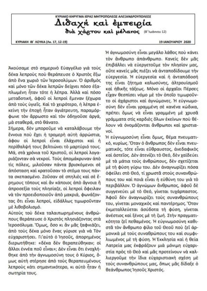 Ι.Μ. Αλεξανδρουπόλεως 19 Ιανουαρίου, 2020 Το Κυριακό Κήρυγμα του Μητροπολίτου Αλεξανδρουπόλεως Διαδώστε: ΔΙΔΑΧΗ ΚΑΙ ΕΜΠΕΙΡΙΑ – Κυριακό Κήρυγμα Σεβ. Μητροπολίτου Αλεξανδρουπόλεως κ.κ. ΑΝΘΙΜΟΥ της ΚΥΡΙΑΚΗΣ 19 ΙΑΝΟΥΑΡΙΟΥ 2020. ΔΙΑΒΑΣΤΕ ΑΝΑΛΥΤΙΚΑ Διαδώστε: