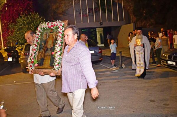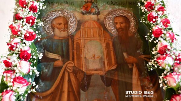 Μετά το πέρας του εσπερινού, ακολούθησε λιτάνευση της Ιερής εικόνας των Αγίων Αποστόλων Πέτρου και Παύλου στα γραφικά σοκάκια της παλιάς πόλης του Ναυπλίου.